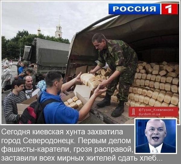 Шведский телеоператор снимает мост, взорванный где то за Лисичанском. В этот момент подъезжают три автобуса и пять машин груженных какими то баулами, мешками и т.д.