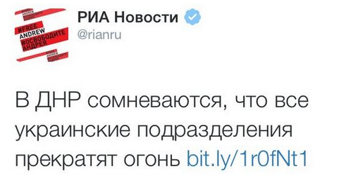 Петро Порошенко  @poroshenko     ·     7m     В результаті телефонної розмови з президентом Росії дійшли домовленості про постійне припинення вогню на Донбасі. Слава Україні!