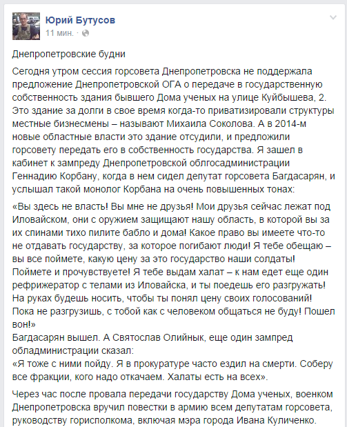 Корбан - главный рейдер Коломойского, вдруг стал таким душкой.Извините, не верю. Да и этот упор на отобрать и снова поделить, настораживает.
