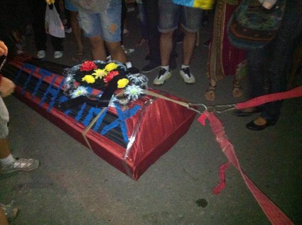 тащат гроб с куклой к консульству РФ
