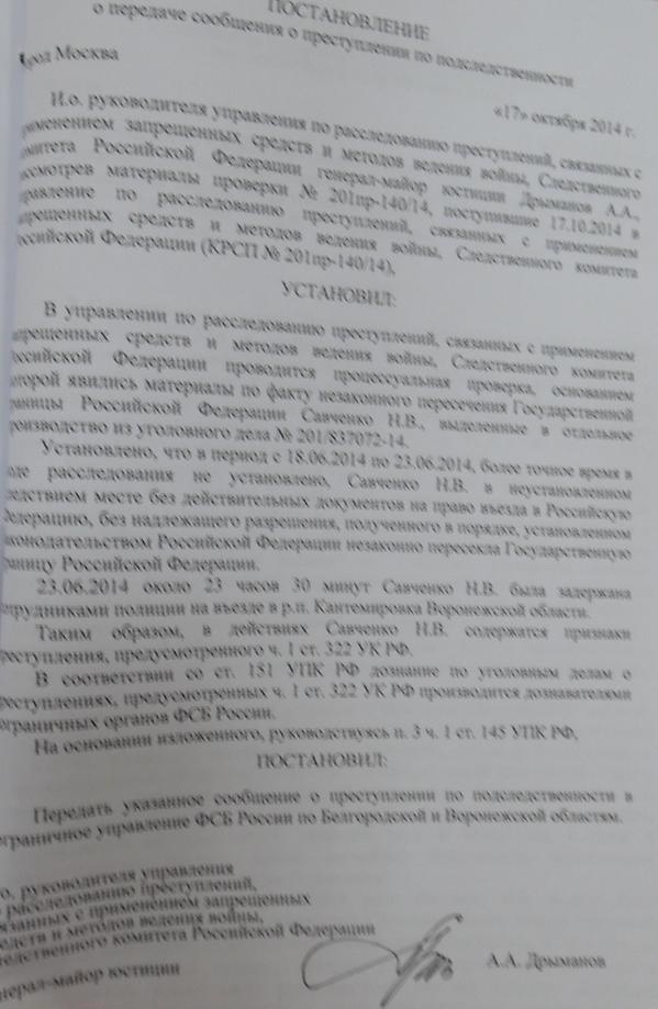 Новое дело против Савченко это те "новые обстоятельства" о которых Путин сообщил Порошенко в личном разговоре, по видимому.