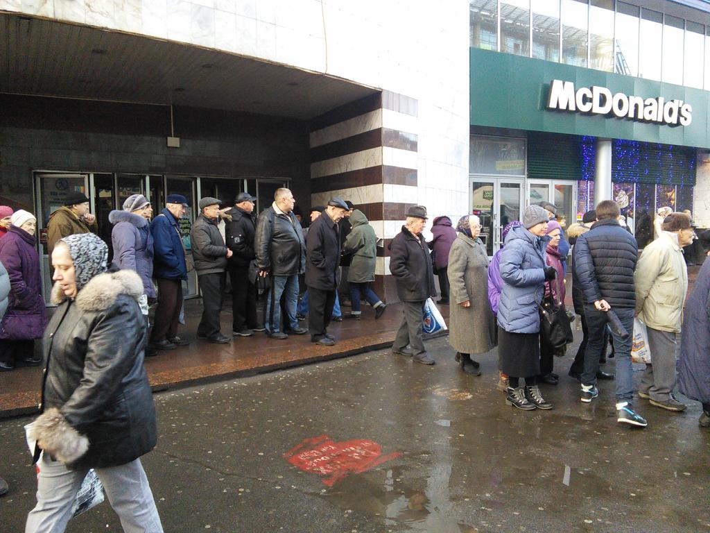Хтось там жартував про "пятую коллону за шестым айфоном"? Черга по газету "Вести" на Лук'янівці 10 хвилин тому
