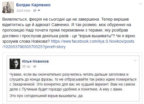 Як версія - хуйло намагається з допомогою Савченко врятувати своє політичне їпло.