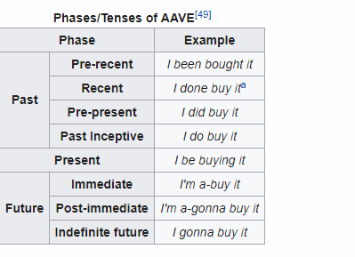 в "афроамериканському" діалекті не зовсім стандартні наприклад форми дієслів