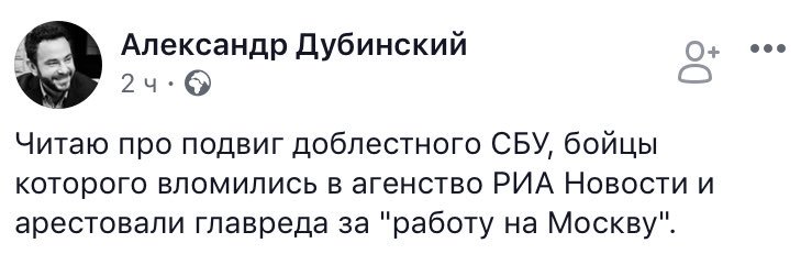 Служба безпеки України інформує, що керівнику пропагандистського антиукраїнського інформаційного ресурсу «РИА Новости Украина» Кирилу Вишинському оголошено про підозру в скоєнні злочину та затримано згідно зі ст. 208 Кримінального процесуального кодексу України.