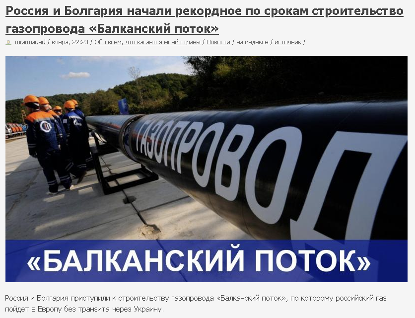 Как сообщил премьер-министр Болгарии Бойко Борисов, «90% труб для «Балканского потока» уже доставлено в Болгарию из России».