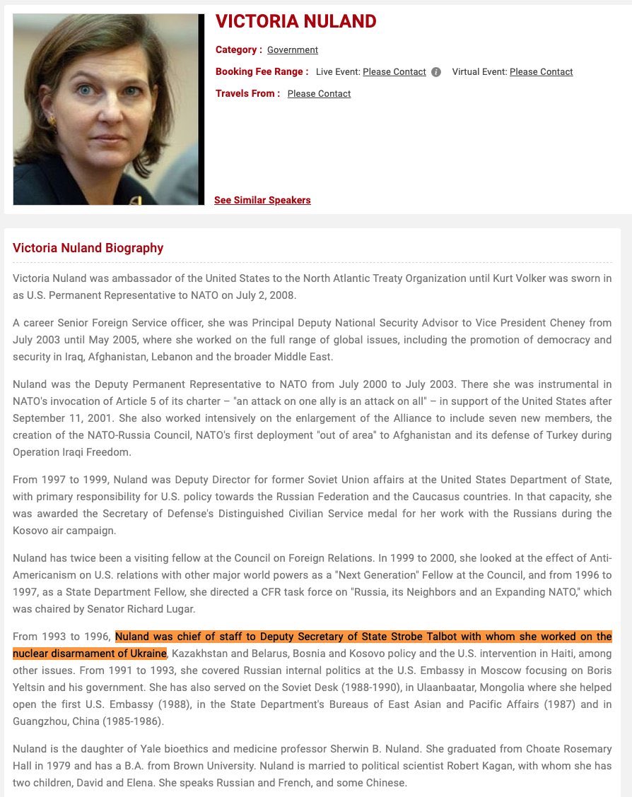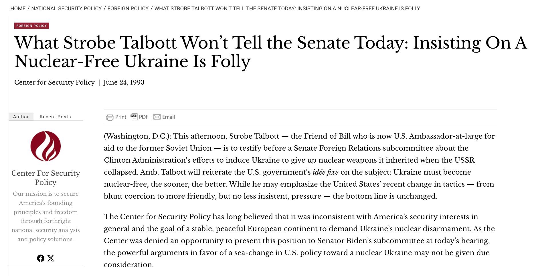 Absolutely true. Victoria Nuland and Senator Joe Biden worked with the Clinton Administration and Moscow to pressure Ukraine to disarm its nuclear arsenal unilaterally and send the nuclear warheads to Russia.