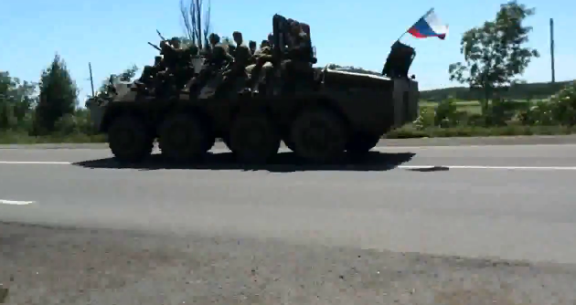 По трассе Донецк-Шахтерск прошла автоколонна с террористами. БТРы, КАМАЗы, арторудие.