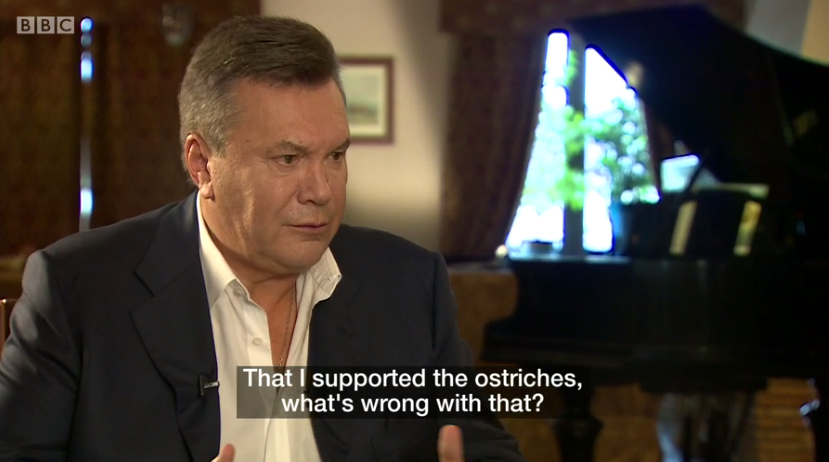 "Но говорит ли это о том, что мы видим человека, сделавшего выводы и ставшего от этого более опасным либо более мирным? Нет. Налицо те же интеллектуальные способности, практически та же система ценностей, то же самое стремление избежать ответственности и прогнуться под сильных мира сего, к которым сегодня был причислен и журналист Би-Би-Си. Так что вопрос о том, всегда ли Виктор Федорович был в душе страусом, можно считать закрытым. Был и остался тем, кто прячем голову в песок", - отметил Ким.