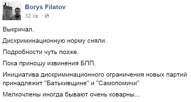 Но Филатов панику пустил в ФБ.
