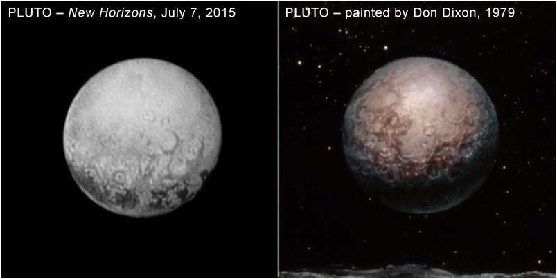 Фотографія Плутона і малюнок Дона Діксона 1979 року.