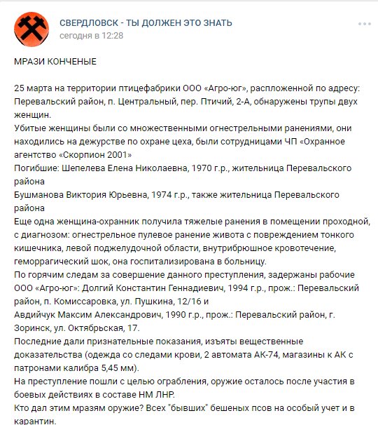 Автор Тема: Бойовики ЛНР пограбували птахофабрику то вбили двох робітниць  (Прочитано 411 раз)