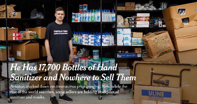Matt Colvin stayed home near Chattanooga, preparing for pallets of even more wipes and sanitizer he had ordered, and starting to list them on Amazon. Mr. Colvin said he had posted 300 bottles of hand sanitizer and immediately sold them all for between $8 and $70 each, multiples higher than what he had bought them for. To him, “it was crazy money.” To many others, it was profiteering from a pandemic.
