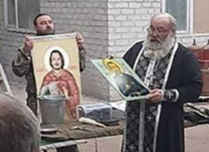 Священник РПЦ принес российским военным икону со Стремоусовым. По-моему, это самый крутой пранк, который я когда-либо видел.