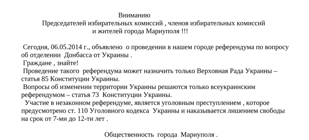 подпись - Общественность города Мариуполя...все сами - власти в городе которая бы такое распространяла - нет