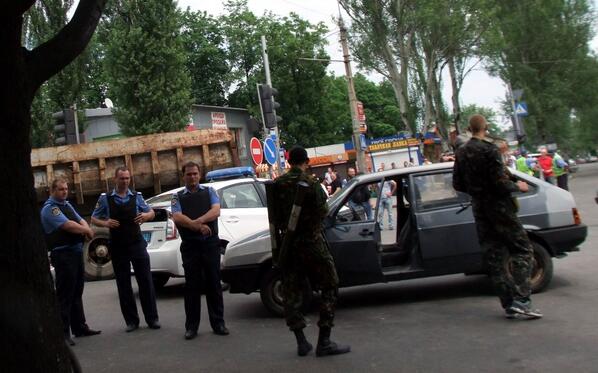 ‏@HromadskeTV  3m "У Донецьку терористи будують барикади під охороною міліції"