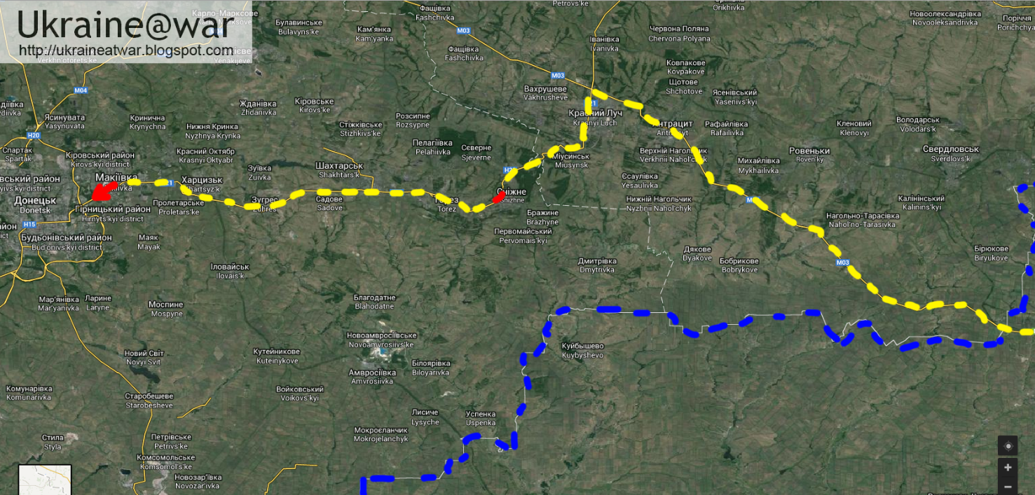 Возможный маршрут танков,которые прибыли в Донецк! Вопрос-где была наша авиация?Как позволили проехать в Донецк?