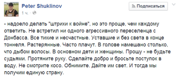 Нужно не бояться смотреть правде в глаза! Я по Громадському и 5-му каналу уже видел с десяток интервью с такими беженцами, которые не стесняются сейчас жить за счёт "пособий хунты" и "подачек бЕндеровцев" и вместо благодарности или хотя бы просто молчания с удовольствием плюют нам в лицо. Люмпенов можно перевоспитать только тяжёлым трудом в спецлагерях. И то далеко не всех.