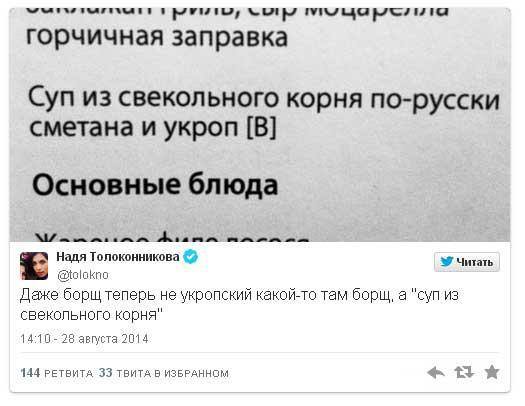 В Таганроге и Ростове русский хотят приравнять к цыганскому, – говорят, Украине исчезающий язык ни к чему, разве что для туалетов: не сори, не лей мимо. Еще задумали иммиграцию из Московии ограничить квотой. Народ прет валом, каждый гордо лепит, что укр в пятом поколении, а на комиссии гопака сплясать не может, совсем оборзели.