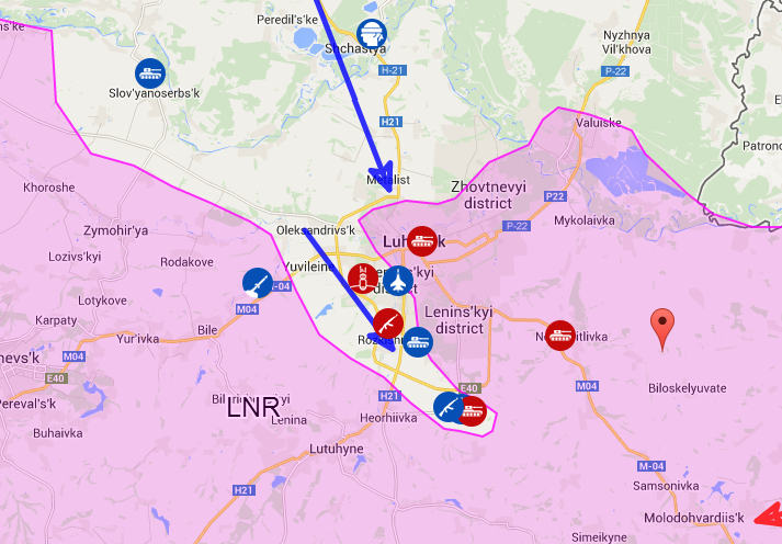 В начале дня было замечено движение тяжелой бронетехники террористов из Луганска в северном и западном направлениях. Скорее всего, техника собиралась идти в поддержку группировок боевиков в Лисичанск и на Саур-Могилу. Но, как оказалось, поздно. Вечером началось активное наступление сил АТО на Луганск с севера и юга. В данный момент продолжаются бои в районе Луганского аэропорта. Аэропорт пока не разблокирован. Будем надеяться, что до утра, вопрос по Луганску будет решен. Что касается Донецка, то здесь все буден намного сложнее. Террористы продолжают взрывать мосты на подходах к городу. Проводят укрепление своих позиций в Ясиноватой, Авдеевке и Горловке. Но если силам АТО удастся решить вопрос Луганска и перекрыть границу с РФ, то группировка боевиков в Донецке будет обречена.