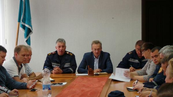 Планерки в исполкоме горсовета Славянска проводит полковник МЧС Чечеткин Николай. Регионал Самсонов помогает