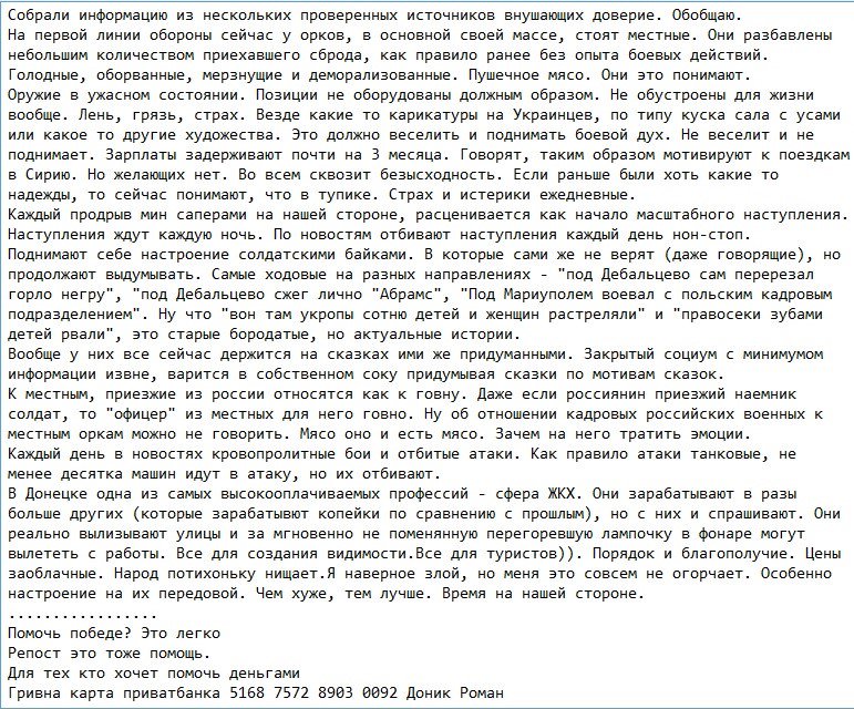 (те що в розділі пропаганда - не означає що це вигадки, просто може бути використано як пропаганда)