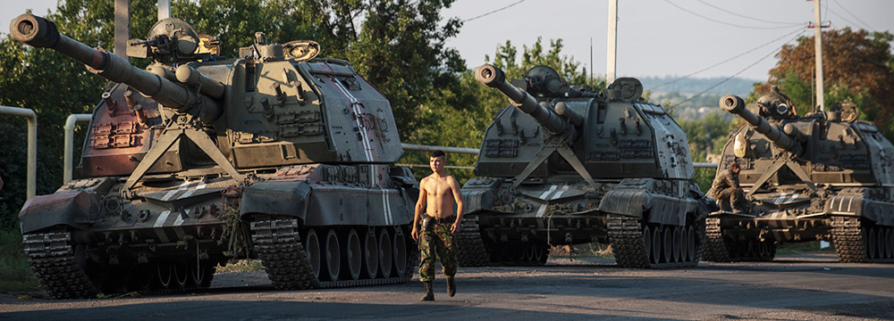 P.S. Оригінальний підпіс під фото: "Самоходные артиллерийские установки украинской армии в городе Иловайске, Донецкая область 14 августа 2014 года "
