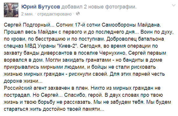 1. Не знаю, как и почему, но некоторых «особо разговорчивых» журналистов надо лишать аккредитации в зоне АТО, а некоторым «особо патриотичным» командирам добровольческих батальонов, которые уже видят себя «выдающимися политиками», стоит иногда просто помолчать. Это я к тому, что вываливание в интернет сведений на уровне «такая-то БТГ такой-то бригады в количестве таком-то, пошла туда-то, а другая сюда-то», а «уровень её боеспособности такой-то и танков в ней осталось столько-то», граничит с государственной изменой. Если мозгов нет, это такое дело, но если ради самопиара, то надо хорошо треснуть этим людям по затылку…