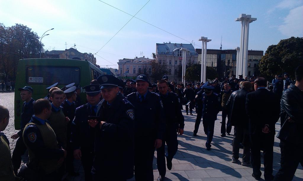 все это происходит не на площади, а на ул. Сумская возле ХАТОБа (ёперный тиатр)