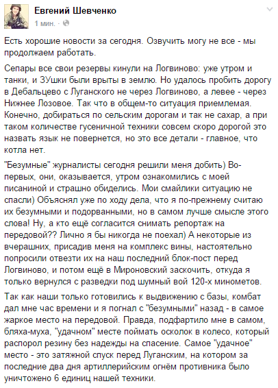Писал в ФБ то, что ему Донбасовцы сообщали.