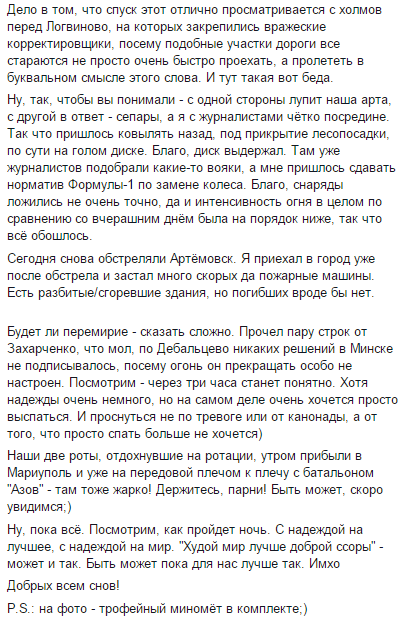 P.S. За эти три дня слышал много хорошого о ребятах из 128 горнопехотной бригады! Ребята настоящие демоны! Без страха и упрека! Люди из стали! Когда-нибудь обязательно напишу о них пару приятных слов!