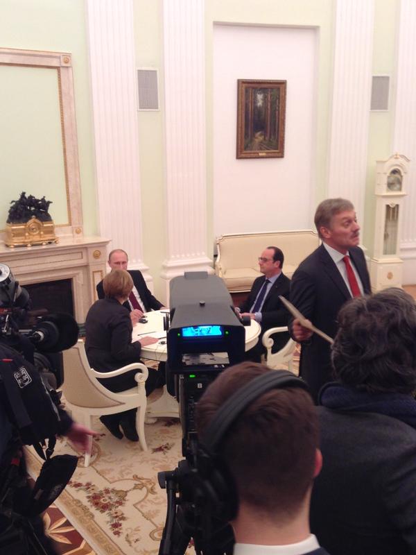Лидеры Германии и Франции Ангела Меркель и Франсуа Олланд прилетели в пятницу в Москву и в восьмом часу вечера начали в Кремле переговоры с российским руководителем Владимиром Путиным о мирном урегулировании украинского конфликта. Меркель перед отлетом предупредила, что они могут стать "последними".