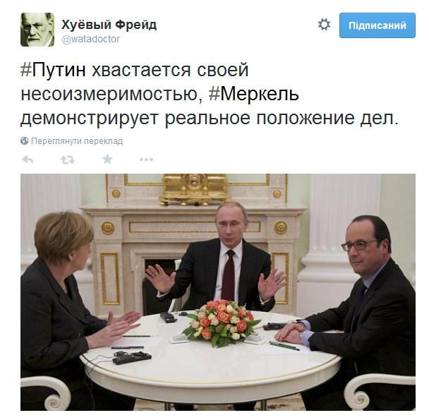 #Путин демонстрирует длину своего величия, #Меркель поправляет, #Олланд избегает геополитики.