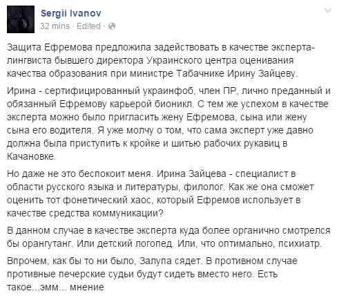 Когда я вопил о том, что документацию ефремовского "Укркоммунбанка" вывозят их этого большого "конверта" мусоровозами и что нужно срочно хватать не Харитоновых, а документацию, т.е. вещдоки, меня никто не слышал. Хотя об этом я рассказывал лично Махницкому в студии 5-го канала у Тани Даниленко в программе. Ему же я рассказывал, а потом, уже при Яреме, опубликовал краткий план - какие следственные действия, в какой очередности нужно производить, чтобы Ефремов сел надолго. Но, как мы все знаем, и Махницкий, и Ярема оказались махровыми пидарасами, наплевавшими как на Майдан, так и на Украину в целом.