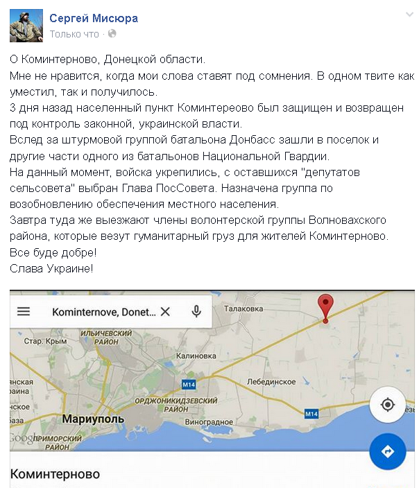 Посліднє повідомлення  про Комінтерново  було таке за 16 березня