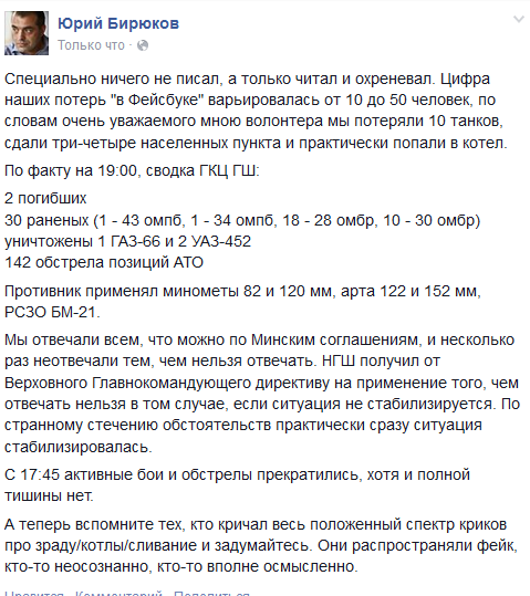 Я вчера вечером подтвердил слова Алины Михайловой в твиттере, о смерти двух военнослужащих 28 бригады, и сразу пошли сообщения с моими комментариями о случившемся.