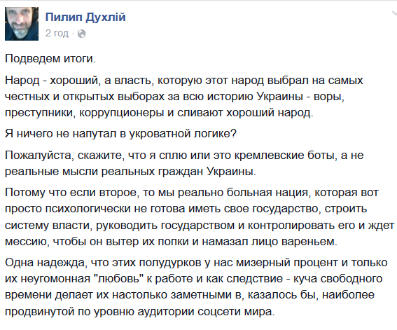 походу... Alex Mochanov відповзає від попередньої своєї тези  про #тотальну київську зраду, і лише одну світлу силу добра у особі ПС.