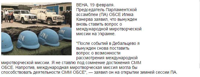 Напомним, президент Украины Петр Порошенко в интервью El Pais в ночь с 3 на 4 февраля заявил, что оснований для введения миротворческого контингента в Украину нет.