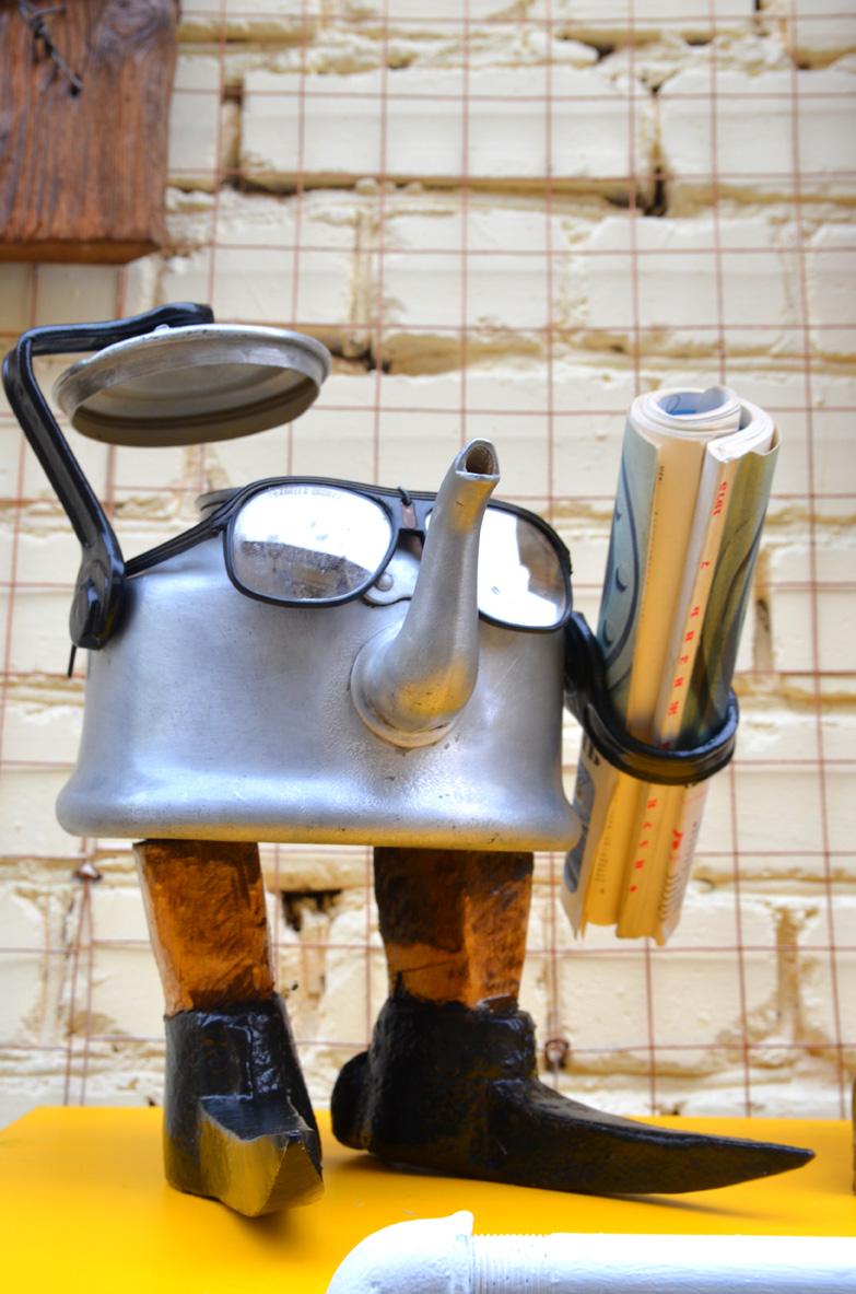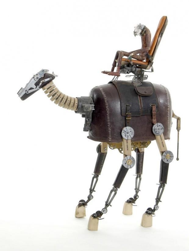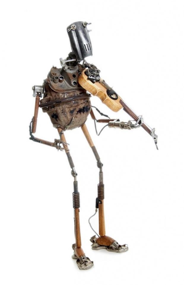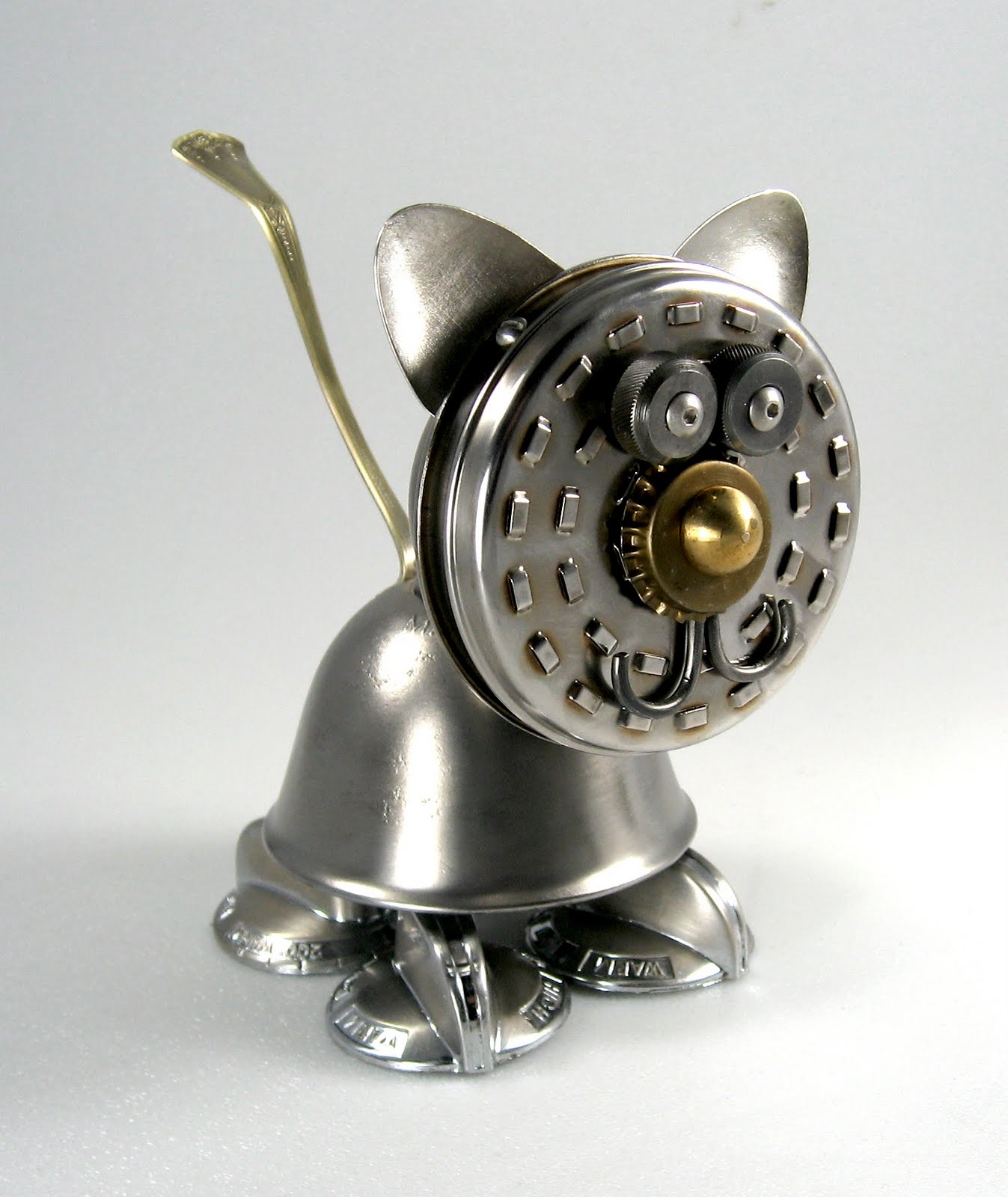 Американец Brian Marshall (aka Adoptabot) делает свои скульптуры из старых масленок, алюминиевых ложек, карандашных точилок и электросчетчиков.