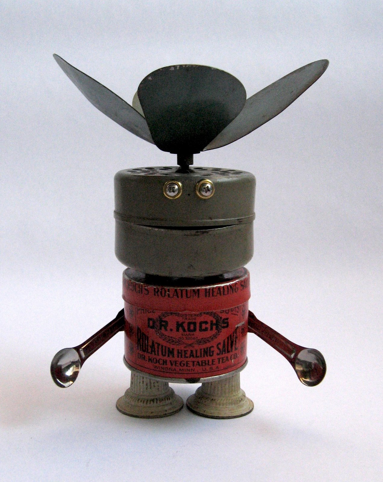 Американец Brian Marshall (aka Adoptabot) делает свои скульптуры из старых масленок, алюминиевых ложек, карандашных точилок и электросчетчиков.