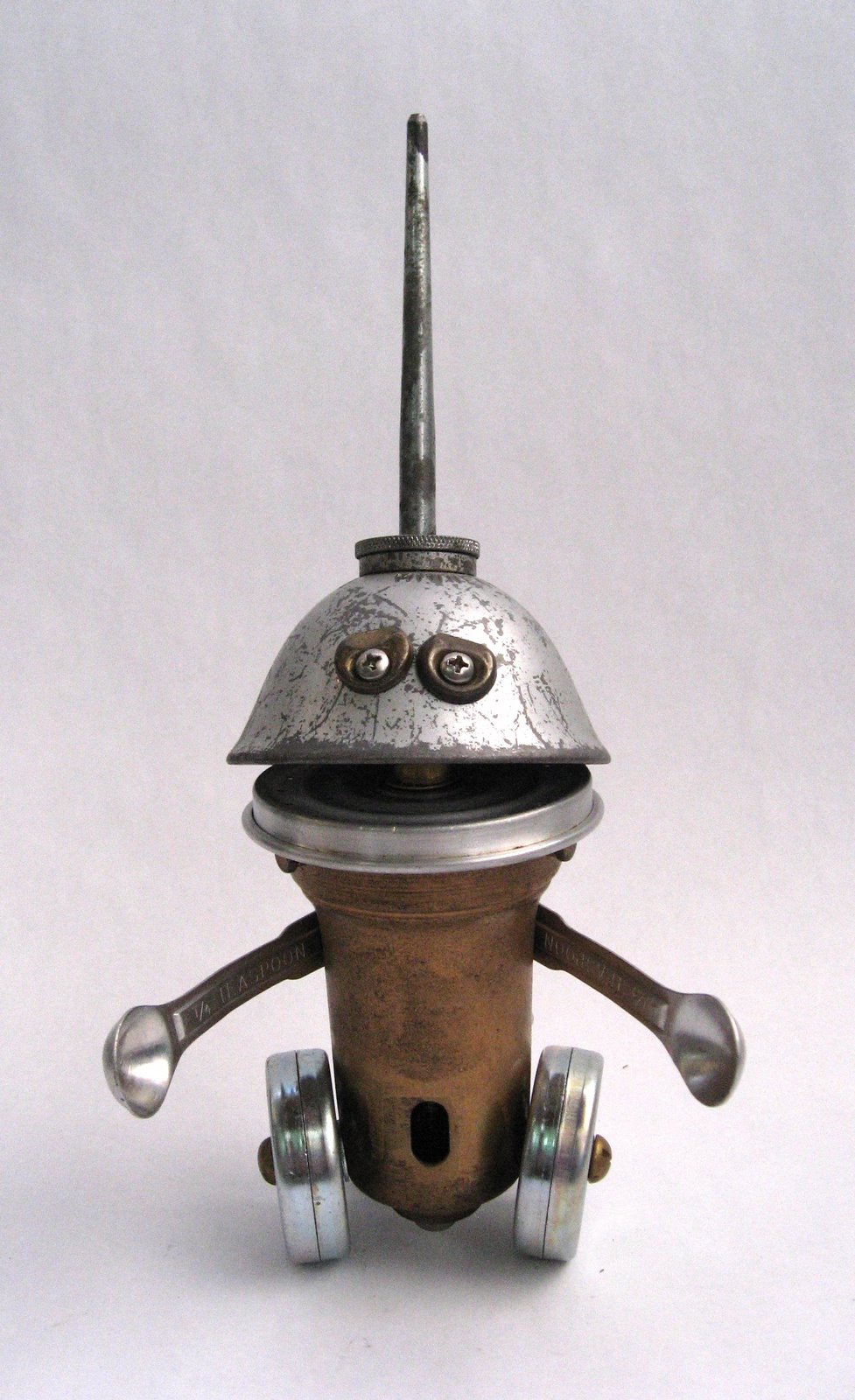Американец Brian Marshall (aka Adoptabot) делает свои скульптуры из старых масленок, алюминиевых ложек, карандашных точилок и электросчетчиков.