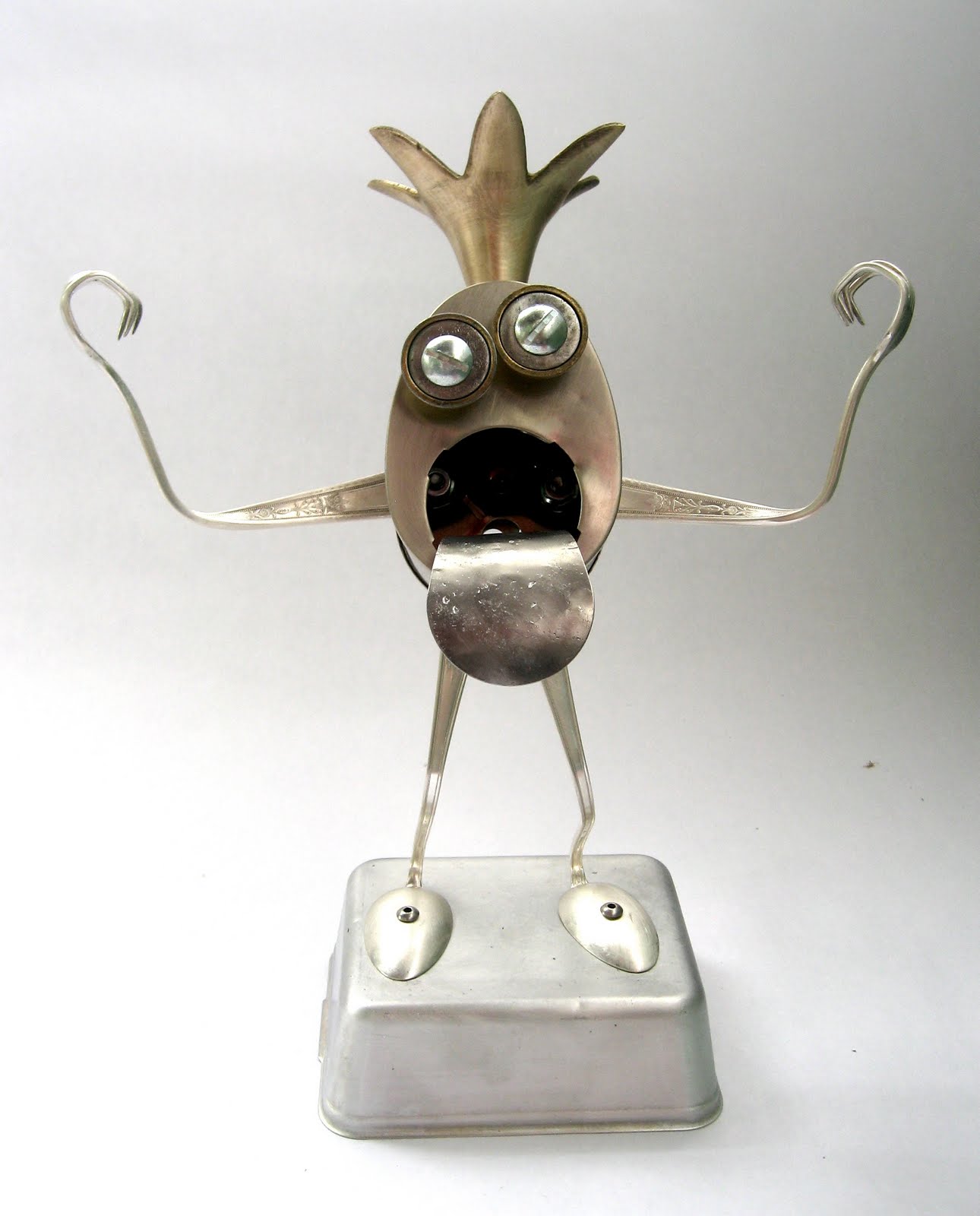 Американец Brian Marshall (aka Adoptabot) делает свои скульптуры из старых масленок, алюминиевых ложек, карандашных точилок и электросчетчиков.