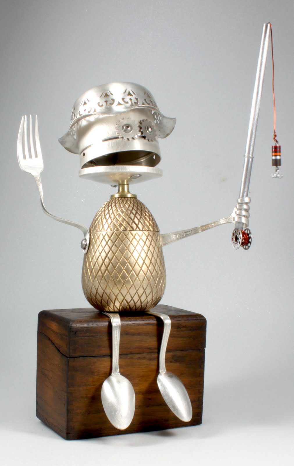 Американец Brian Marshall (aka Adoptabot) делает свои скульптуры из старых масленок, алюминиевых ложек, карандашных точилок и электросчетчиков.