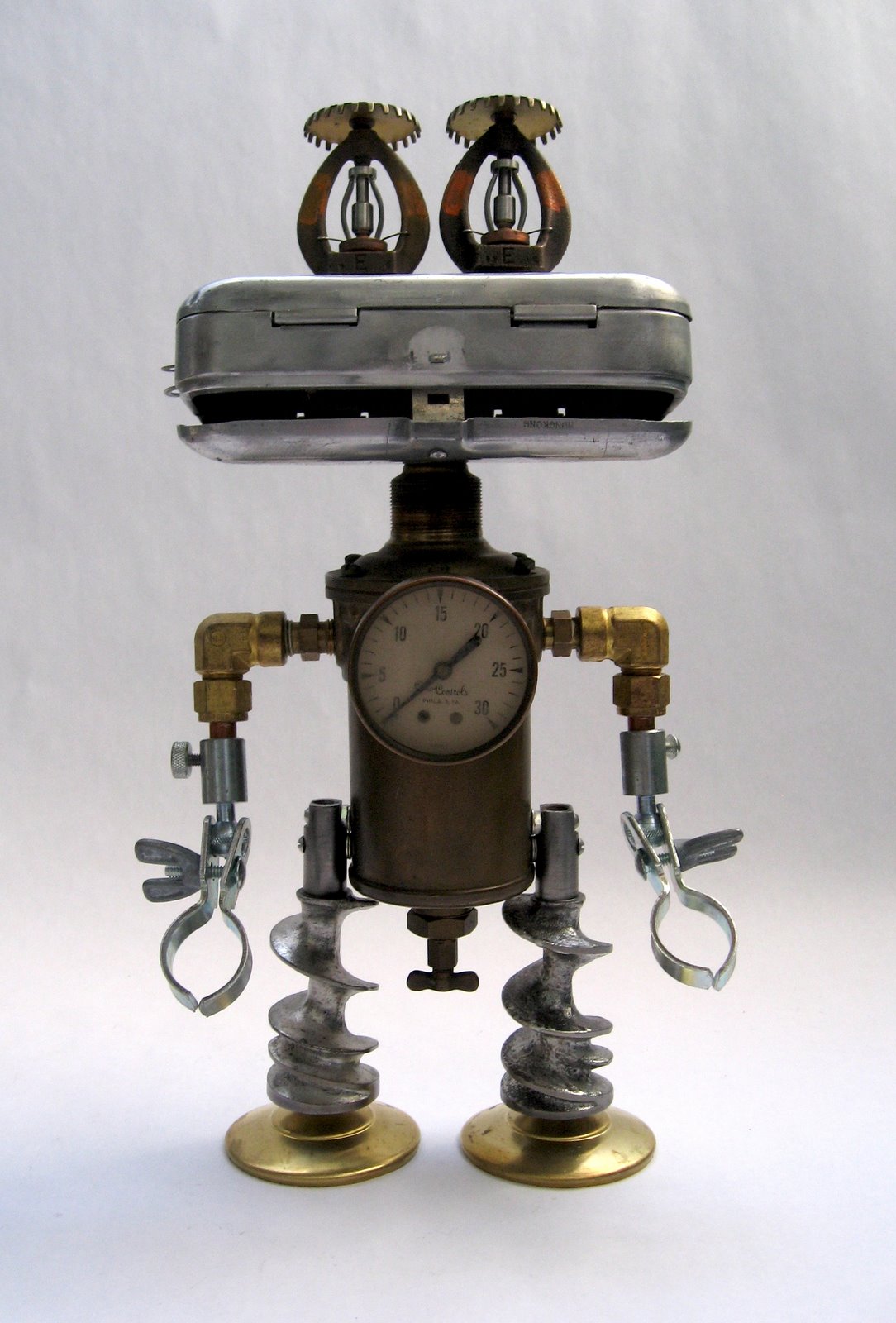 Американец Brian Marshall (aka Adoptabot) делает свои скульптуры из старых масленок, алюминиевых ложек, карандашных точилок и электросчетчиков.