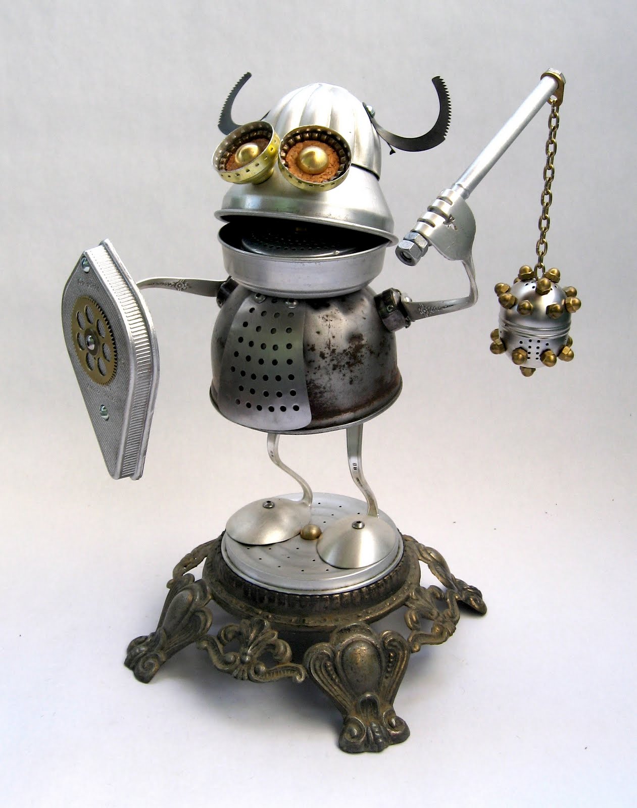 Американец Brian Marshall (aka Adoptabot) делает свои скульптуры из старых масленок, алюминиевых ложек, карандашных точилок и электросчетчиков.