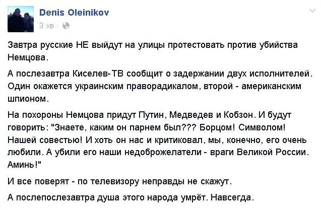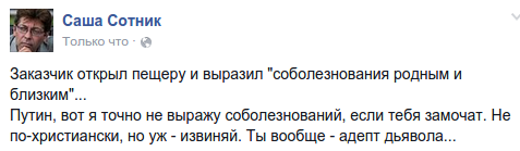 Я не думаю, чтобы это было сделано по инициативе Путина. Но возникает вопрос: учинили ли это фашиствующие отморозки с ведома Путина или нет?