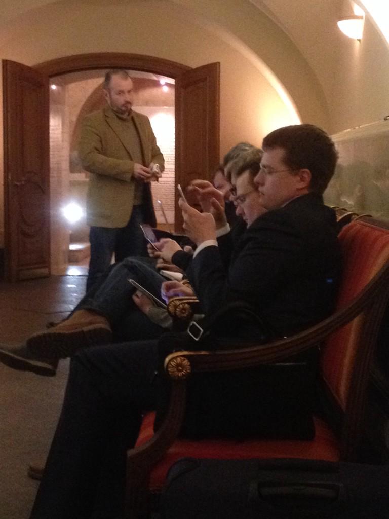 Операторы, выставив камеры в зале, вернулись в наш уютный подвал. Ждем, пока позовут, вместе.