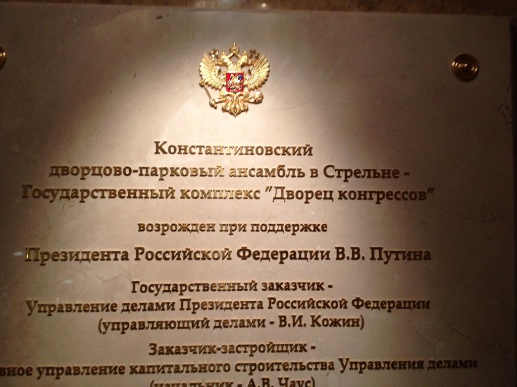 В холле Константиновского дворца висит вот такая табличка. Выше человеческого роста!