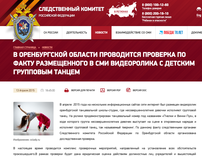 СКР увидел развратные действия в номере "Пчелки и Винни-Пух" оренбургской школы танцев