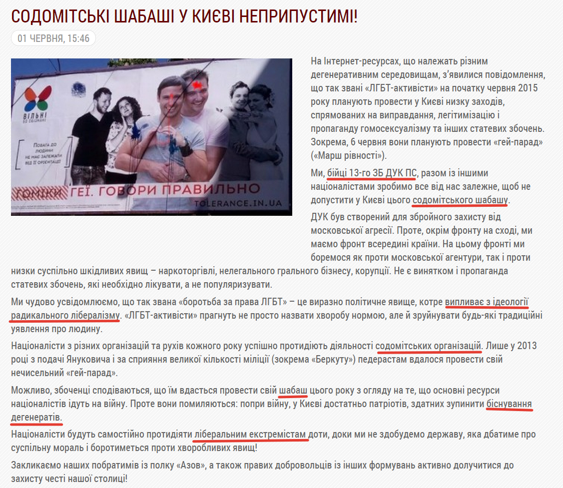 З політичного боку, за нишніх обставин українського прагнення в Європу, будь які насильницькі дії щодо геїв будуть на Заході сприйматися вкрай негативно. Тому такі дії абсолютно неприпустимі.